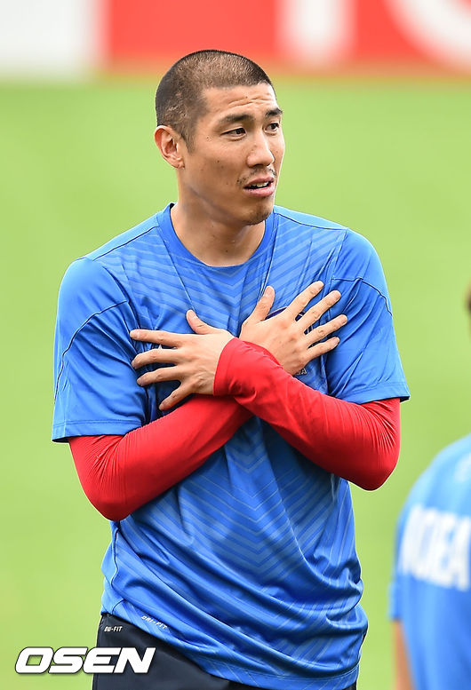 울리 슈틸리케 감독이 이끄는 한국 축구대표팀이 이라크와의 2015 아시안컵 4강전에 대비해 24일 오후 호주 시드니 코가라흐 오발에서 훈련을 가졌다. 차두리가 몸을 풀며 깜찍한 행동을 보이고 있다.
