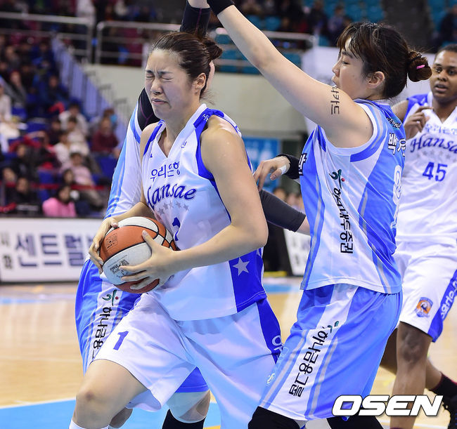 24일 오후 경기도 부천시 부천실내체육관에서 열린 'KB국민은행 2014-2015 여자프로농구' 하나외환과 우리은행의 경기 2쿼터 양지희가 골밑돌파를 시도하고 있다.