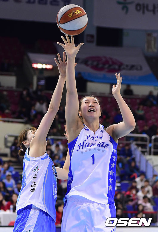 24일 오후 경기도 부천시 부천실내체육관에서 열린 'KB국민은행 2014-2015 여자프로농구' 하나외환과 우리은행의 경기 2쿼터 양지희가 슛을 시도하고 있다.