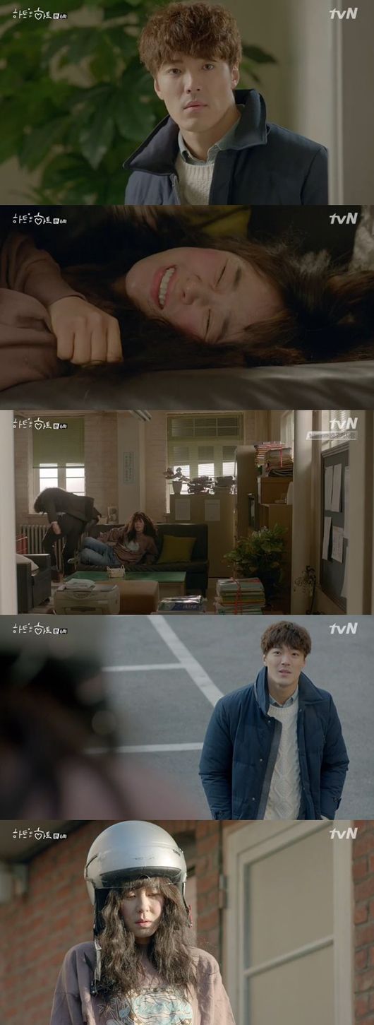 24일 방송된 tvN 금토드라마 '하트투하트'(극본 이정아, 연출 이윤정) 6회에서 장두수(이재윤 분)은 연락이 닿지 않은 차홍도(최강희 분)가 걱정돼 병원을 찾았다가, 고이석(천정명 분)과 오붓한 모습을 보이는 모습을 보고 되돌아간다.