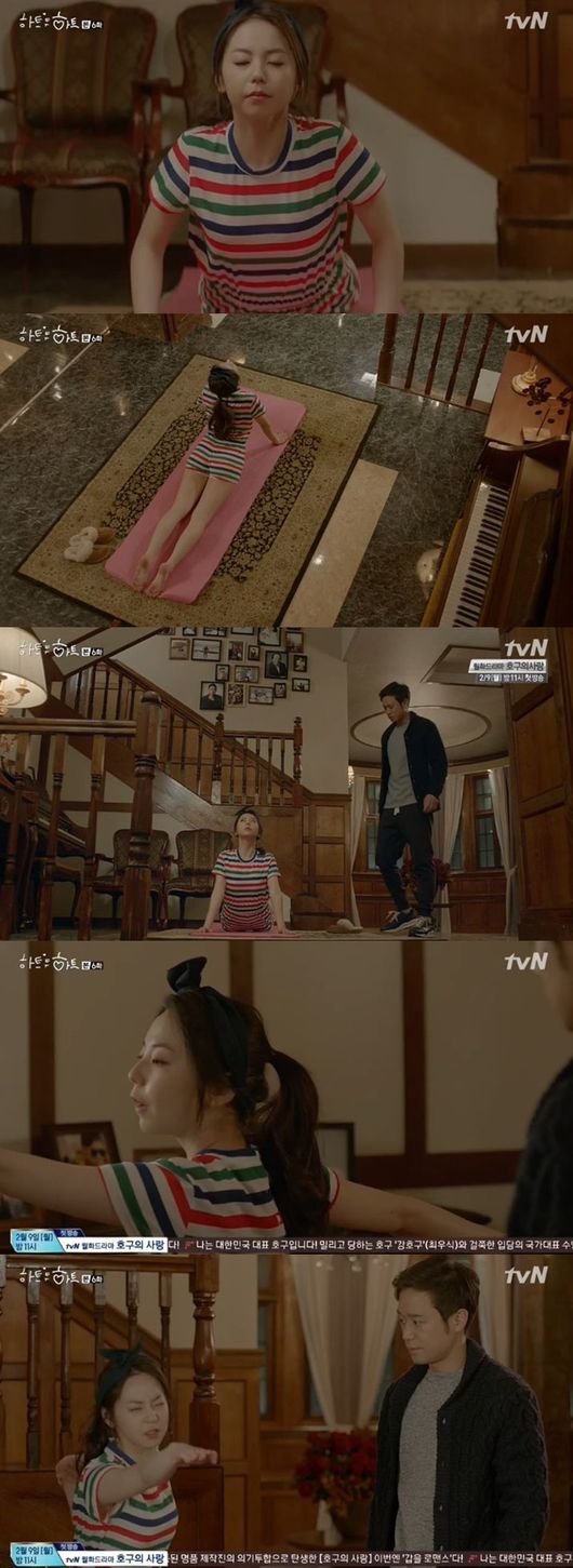 24일 방송된 tvN 금토드라마 '하트투하트'(극본 이정아, 연출 이윤정) 6회에서 고세로(안소희 분)는 자신의 집 거실에서 요가 매트를 깔고, 자연스럽게 요가 포즈를 취했다.