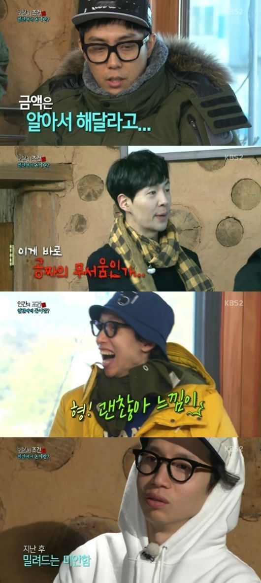 이에 윤상현과 봉태규는 폭발했다. 이들은 진심으로 빈정이 상한 표정으로 함께 먹기 위해 사온 만두를 나눠먹지 않으며 불만을 전했다. 봉태규는 “은지원은 돈이 없으면 빌리고, 있으면 다 쓴다. 저 형을 어떻게 하냐”고 심란해했다.