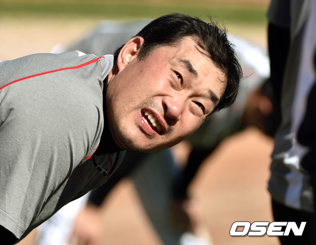 140m 왕복 달리기를 한 봉중근이 힘든 표정을 짓고 있다./spjj@osen.co.kr