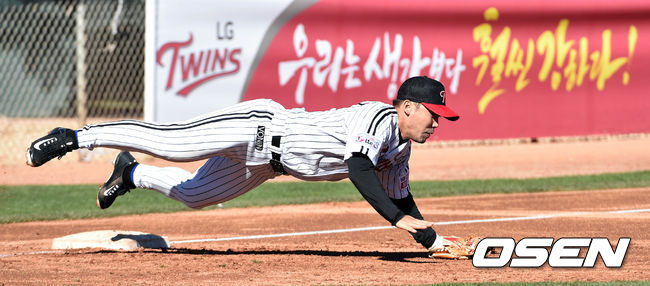 내야수 수비 훈련에서 박근이 악송구를 몸을 날려 잡아내고 있다./spjj@osen.co.kr