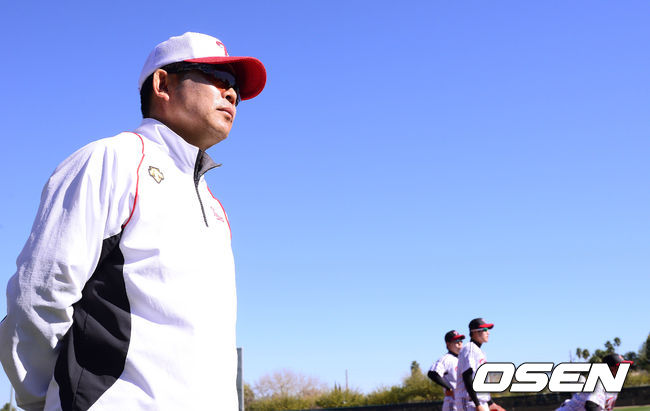 양상문 감독이 선수들의 훈련을 지켜보고 있다./spjj@osen.co.kr
