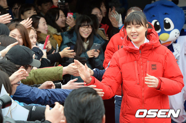 25일 오후 서울 장충체육관에서 열린 'NH농협 2014~2015 V-리그 올스타전'에서 앞서 진행된 레드카펫 행사에서 현대건설 양효진이 레드카펫을 밟고 있다.