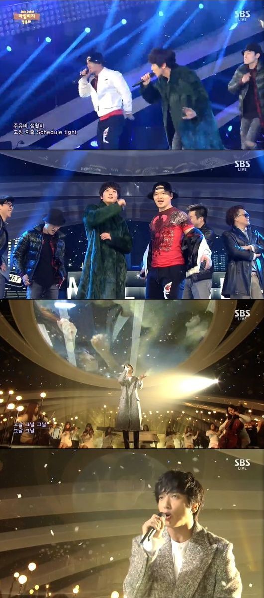 장난스러운면서도 세련된 무대가 끝나고 정용화는 다시 무대에 등장해 발라드곡 '어느 멋진 날'을 불렀다. 깔끔한 코트를 입고 등장한 그는 앞선 무대와 전혀 다른 감미로운 발라드로 무대를 뜨겁게 달궜다.