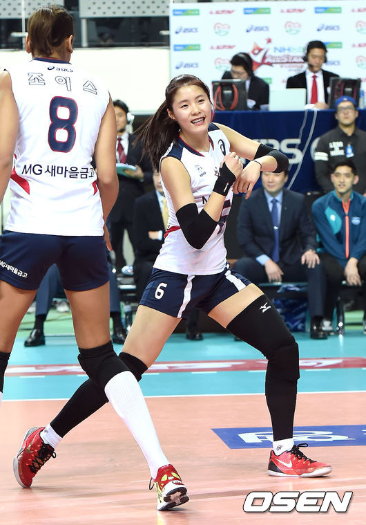 25일 오후 서울 장충체육관에서 열린 'NH농협 2014~2015 V-리그 올스타전' K스타 이다영이 득점을 올린 뒤 댄스를 선보이고 있다.