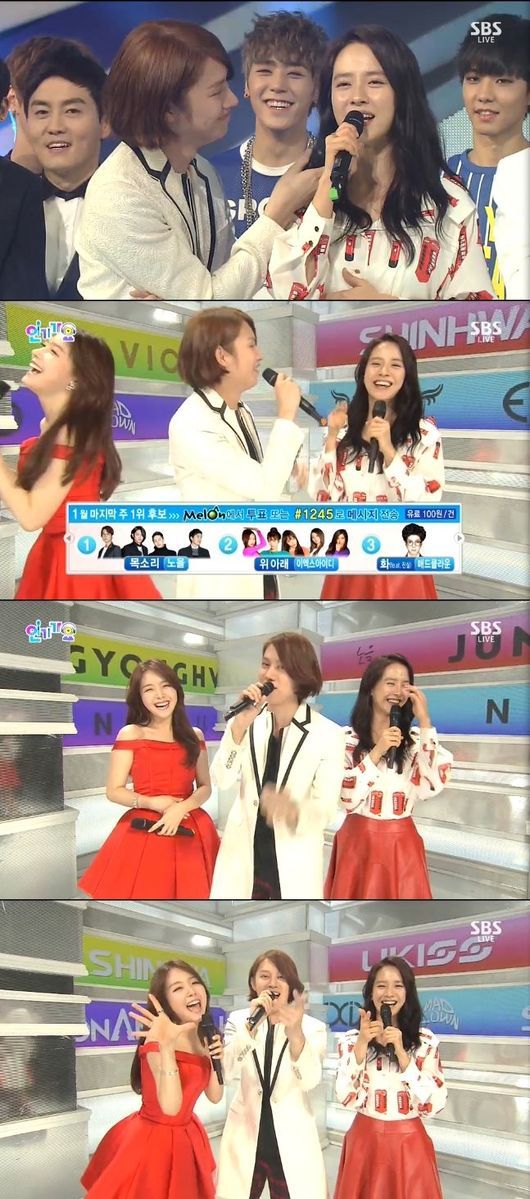 송지효는 25일 오후 생방송 SBS '인기가요'에서 1위 호명 후 "'인기가요'에 누를 끼쳐 죄송하다. '인기가요'의 인기가 영원했으면 좋겠고, 사랑한다"며 인사를 건넸다.
