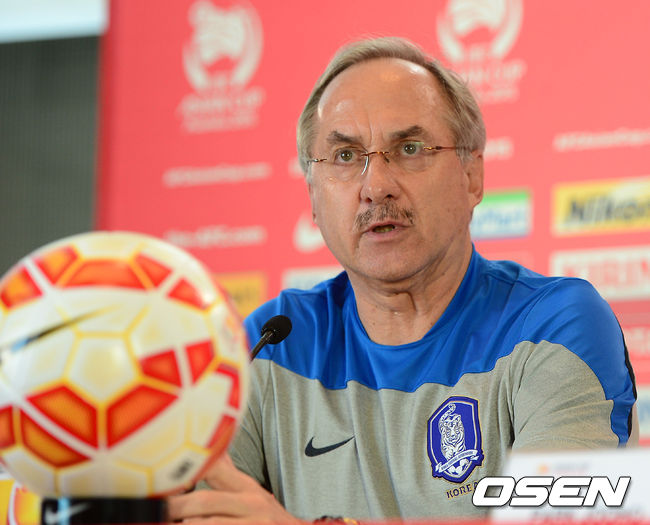 울리 슈틸리케 감독이 이끄는 한국 축구대표팀이 이라크와의 2015 아시안컵 4강전에 대비해 24일 오후 호주 시드니 스타디움 오스트레일리아서 훈련을 가졌다. 훈련 전 기자회견이 열리고 있다. 이 날 한국 기자회견에는 슈틸리케 감독과 박주호가 참석했다.