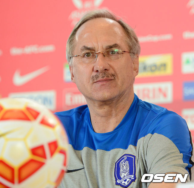 울리 슈틸리케 감독이 이끄는 한국 축구대표팀이 이라크와의 2015 아시안컵 4강전에 대비해 24일 오후 호주 시드니 스타디움 오스트레일리아서 훈련을 가졌다. 훈련 전 기자회견이 열리고 있다. 이 날 한국 기자회견에는 슈틸리케 감독과 박주호가 참석했다.