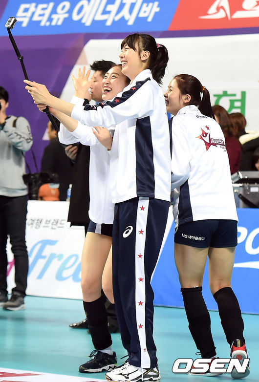 배유나, 양효진, 이다영이 기념촬영을 하고 있다. /youngrae@osen.co.kr