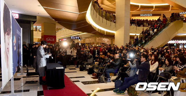 그룹 씨엔블루 멤버 정용화가 25일 오후 서울 여의도 IFC몰에서 진행된 첫 솔로 앨범 '어느 멋진 날' 팬사인회에 참석해 인사말을 준비하고 있다.