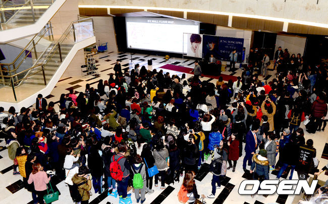 그룹 씨엔블루 멤버 정용화가 25일 오후 서울 여의도 IFC몰에서 진행된 첫 솔로 앨범 '어느 멋진 날' 팬사인회에 참석해 사인회를 준비하고 있다.