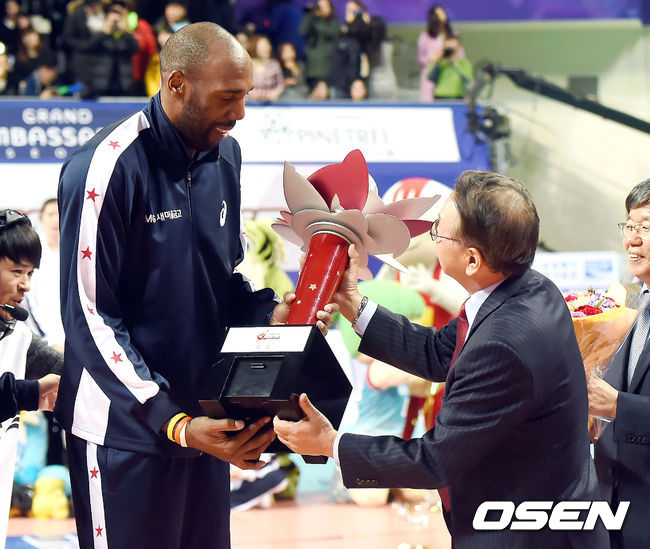 우승을 거둔 V-스타 시몬이 구자준 총재로부터 우승 트로피를 건네받고 있다. /youngrae@osen.co.kr