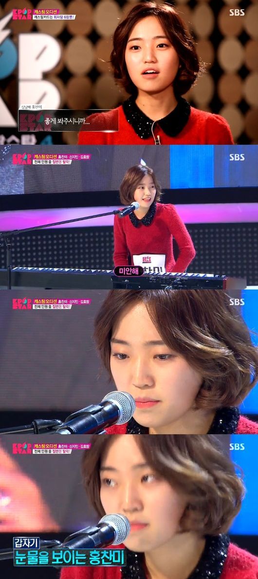 홍찬미가 25일 방송된 SBS 오디션 프로그램 ‘일요일이 좋다-K팝스타4’에서 양현석의 혹평에 눈물을 흘렸다.