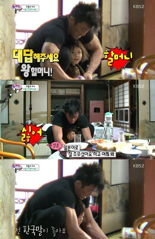 한국말을 모르는 왕할머니가 답을 하지 않자 추성훈은 “일본어로 인사를 해봐라”고 권유했지만 사랑은 “싫어”라며 한국말 사용을 고집해 시선을 모았다.