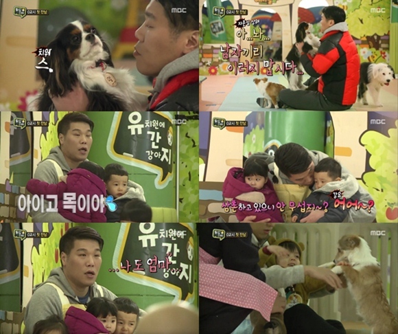 뿐만 아니라 아이들이 도착한 후에는 다정한 삼촌 같은 모습이었다. 강아지가 무서워서 우는 아이들을 안아서 달래주고, 나름대로 부드러운 목소리로 아이들을 달래면서 강아지와 가까워질 수 있는 시간을 주려고 했다.