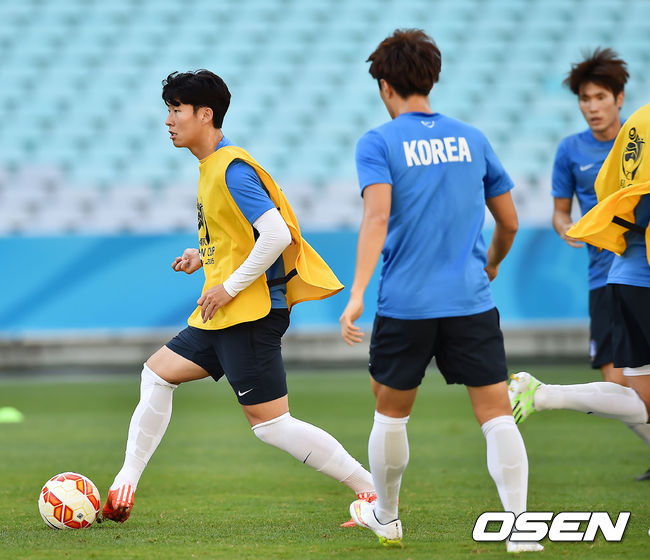 울리 슈틸리케 감독이 이끄는 한국 축구대표팀이 이라크와의 2015 아시안컵 4강전에 대비해 25일 오후 호주 시드니 스타디움 오스트레일리아서 훈련을 가졌다. 그라운드 위에서 손흥민이 빠르게 돌파를 하고 있다.