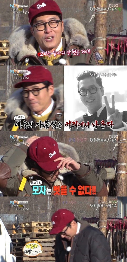 김주혁은 25일 오후 방송된 KBS 2TV 예능프로그램 ‘해피선데이-1박2일(이하 ’1박2일‘)’에서 끝까지 모자를 사수했다.