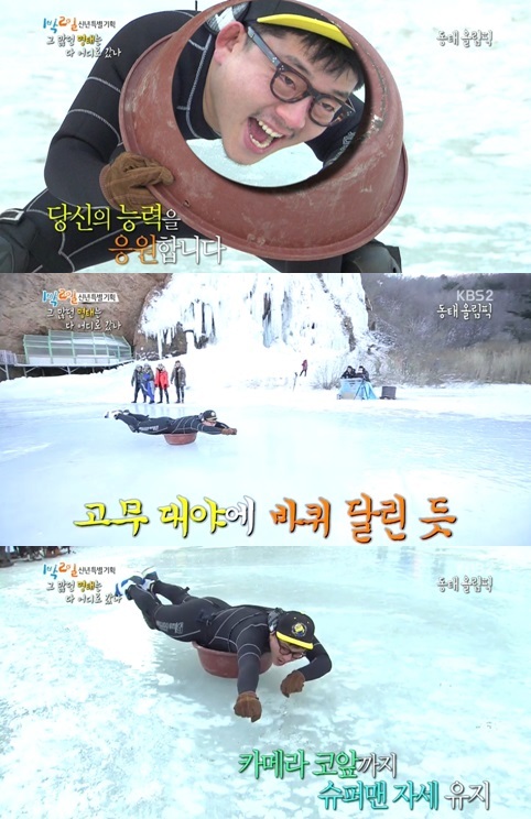 이날 방송에서 김준호는 멤버들과 함께 고무대야 썰매 게임을 진행했다. 웃기면 예술점수를 받는 다는 말에 김준호는 출발 자세부터 희극인 다운 자세를 취했다.