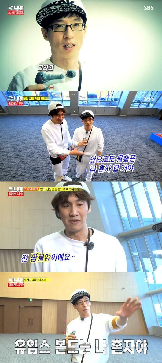 그래도 제작진이 유재석을 내세운 이유는 있었다. MBC ‘무한도전’과 ‘런닝맨’을 통해 추격전과 두뇌 싸움에서 탁월한 능력을 보여주는 유재석은 이광수와 함께 하나둘 제거하기 시작했다. 그리고 마지막 주자 개리까지 제거하며 두 사람의 최종 승리로 결론이 나나 싶었다. 여기서 또 다른 반전이 있었다. 이광수가 유재석의 이름표에 물총을 쏘면 유재석이 가진 ‘유임스 본드’ 캐릭터는 영영 볼 수 없는 것이었다. 반면에 물총을 쏘지 않으면 앞으로 두 사람이 함께 스파이 역할을 할 수 있다.