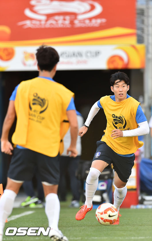 울리 슈틸리케 감독이 이끄는 한국 축구대표팀이 이라크와의 2015 아시안컵 4강전에 대비해 25일 오후 호주 시드니 스타디움 오스트레일리아서 훈련을 가졌다. 손흥민이 드리블을 하고 있다.