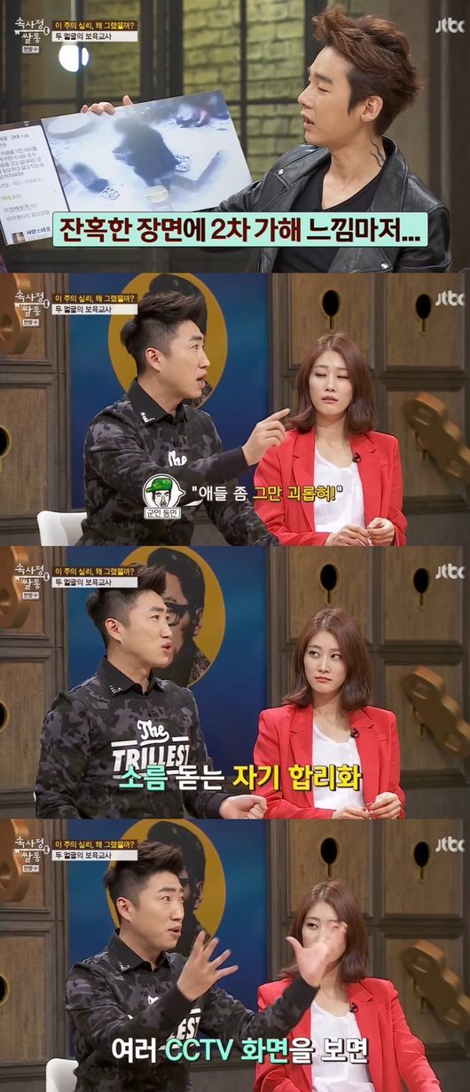 25일 방송된 JTBC '속사정 쌀롱' 13회에는 장수원이 게스트로 출연한 가운데, ‘두 얼굴의 보육교사’를 주제로 왜 그랬는지 심리를 이야기했다.
