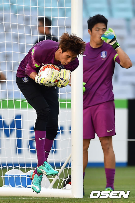 울리 슈틸리케 감독이 이끄는 한국 축구대표팀이 이라크와의 2015 아시안컵 4강전에 대비해 25일 오후 호주 시드니 스타디움 오스트레일리아서 훈련을 가졌다. 김진현이 수비훈련을 하고 있다.