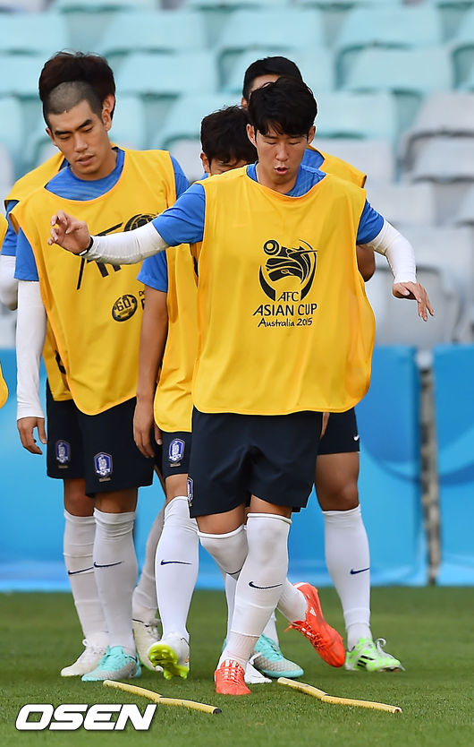 울리 슈틸리케 감독이 이끄는 한국 축구대표팀이 이라크와의 2015 아시안컵 4강전에 대비해 25일 오후 호주 시드니 스타디움 오스트레일리아서 훈련을 가졌다. 그라운드 위에서 손흥민이 훈련을 하고 있다.