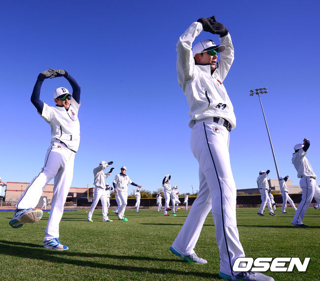 25일(현지시간) 애리조나에 스프링캠프를 차린 두산 베어스가 지휘봉을 잡은 신임 김태형 감독의 지휘아래 굵은 땀방울을 흘리며 우승에 대한 힘찬 발걸음을 시작했다.