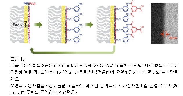 연구팀은 아이들이 블록을 쌓아 구조물을 만들듯이, 분자들을 교차로 쌓아 조립하여 여러 층의 얇은 막을 만드는 나노기술(분자층상조립기술)로 분리막의 구조와 성능을 원하는 대로 제조할 수 있는 기술을 개발했다. 특히 이 기술로 제조된 분리막은 기존에 비해 염분 제거율은 동일하면서도 물 투과율을 80%이상 향상시켰다.