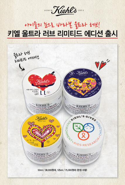 키엘은 지난 2006년 출시, 한국에서도 잘 알려진 수분 크림으로 자리매김한 울트라 훼이셜 크림에 대한 이용자들의 사랑에 대해 감사의 마음을 전하고, 1세기 넘게 이어온 철학을 지켜 나가고자 2015년 '키엘 울트라 러브 캠페인'을 진행한다. 이를 위해 한정판 '울트라 러브 리미티드 에디션' 3종을 선보였다.