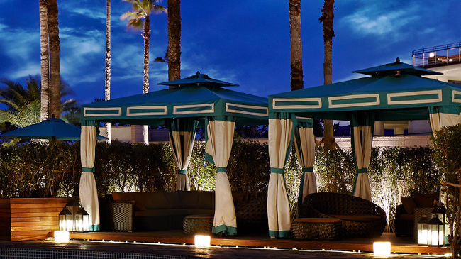 이국적인 정취의 야외 수영장 옆에 위치한 가제보는 대형 소파, 2인이 이용할 수 있는 라운드형 선베드가 갖춰져 있는 프라이빗한 공간으로 히팅 시설, 이중 커튼막 등으로 더욱 따뜻하게 업그레이드 됐다.