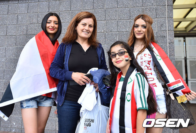 울리 슈틸리케 감독이 이끄는 한국 축구대표팀은 26일(이하 한국시간) 오후 호주 시드니에 위치한 스타디움 오스트레일리아서 이라크와 2015 AFC 아시안컵 준결승전을 벌어질 예정인 경기장 밖에서 이라크 모녀 팬이 응원을 하고 있다.