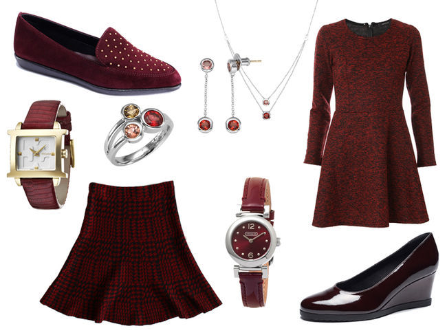 액세서리에서도 2015년 트렌드를 반영한 제품들이 많은 인기를 얻고 있다. 골드나 실버 포인트가 들어간 짙은 와인 컬러의 손목시계나 사랑스러운 와인 빛 쥬얼리 상품들이 주목 받고 있다. 이런 액세서리 제품들은 격식 있는 자리뿐 아니라 평소에도 부담 없이 착용하기 좋다.