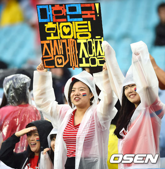 경기에 앞서 한국 팬들이 열띤 응원을 선보이고 있다.
