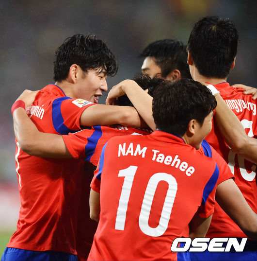 후반 한국 김영권이 추가골을 넣고 동료선수들과 기뻐하고 있다.