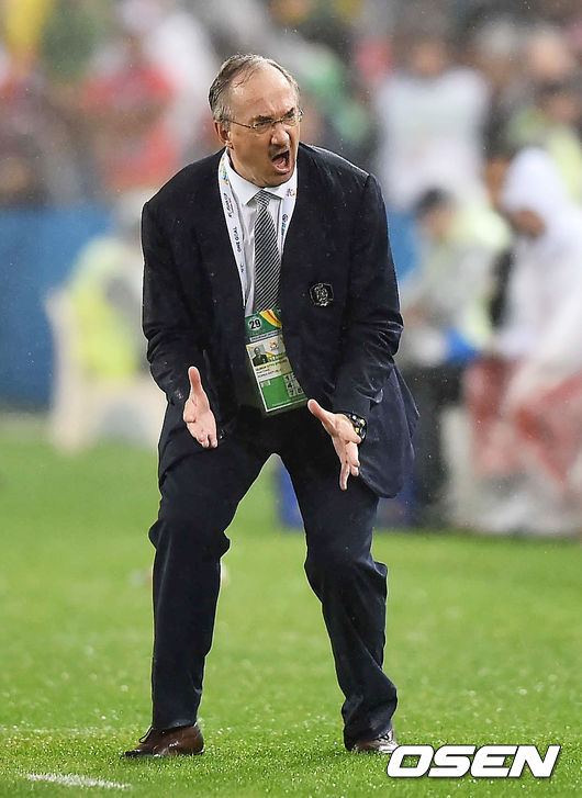 후반 한국 슈틸리케 감독이 선수들을 독려하고 있다.