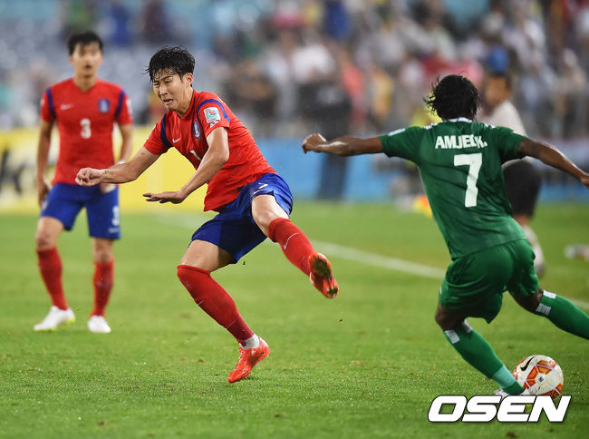 후반 한국 손흥민이 이라크 카라프가 걷어 낸 볼에 다리를 뻗고 있다. / rumi@osen.co.kr