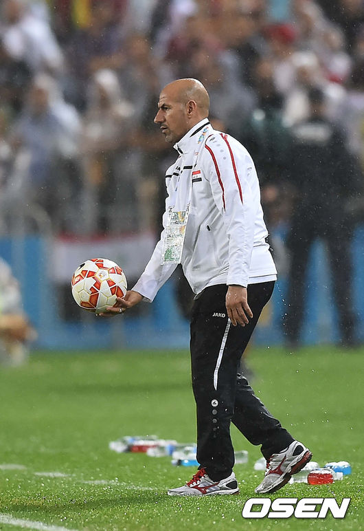 후반 이라크 라디 셰나이실 감독이 볼을 건네고 있다./ rumi@osen.co.kr