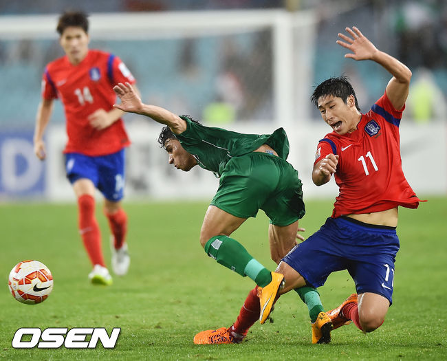 후반 한국 이근호가 볼다툼을 하고 있다./ rumi@osen.co.kr