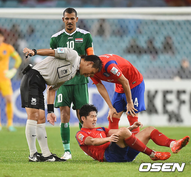 후반 한국 손흥민이 고통을 호소하고 있다./ rumi@osen.co.kr