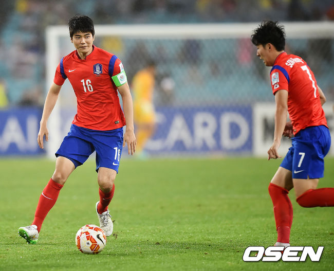 후반 한국 기성용이 손흥민에게 연결하고 있다./ rumi@osen.co.kr