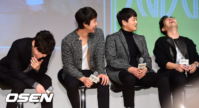 정우의 각선미가 드러난 사진을 보자 강하늘 정우 조복래 진구가 미소짓고 있다.