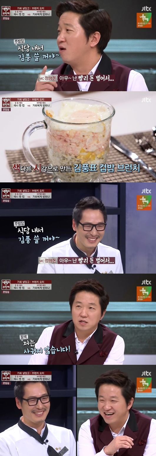 특히 정형돈은 “나 진짜 돈 벌면 식당내서 김풍 요리사로 쓸 거야”라고 야무지게 다짐해 웃음을 자아냈다. 이에 김풍은 “정형돈이 여자였자면 사귀었을 것”이라고 말했지만, 정형돈은 “저는 사귀지 않는다. 같이 산다”고 말해 모두를 폭소케 했다.
