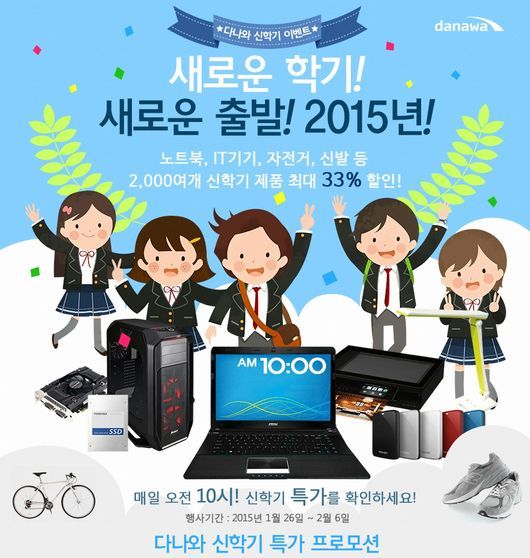 가격비교 사이트 다나와(www.danawa.com)는 26일부터 오는 2월 6일까지 노트북, 운동화 등 신학기 인기 상품을 최저가 대비 최대 33%할인 된 가격에 판매한다.