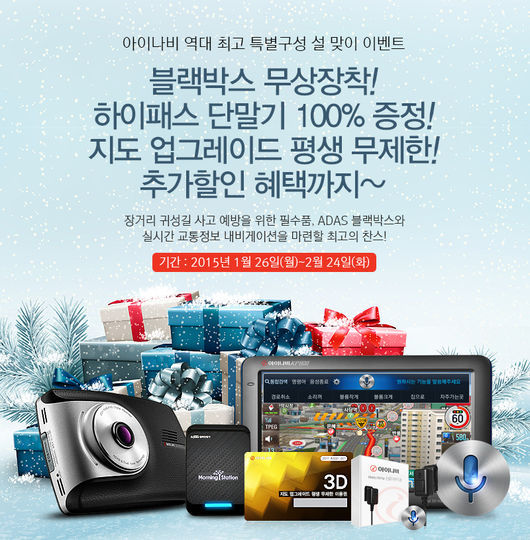 민족 대명절 설을 맞아 진행하는 이번 이벤트는 귀성길 장거리 운전의 필수품인 아이나비 블랙박스와 내비게이션을 최고의 조건으로 구입할 수 있다.