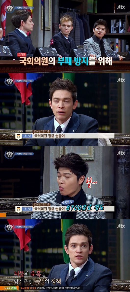 다니엘은 "국회의원 부패 방지 위해 국회위원 평균 월급이 8700유로다. 뇌물의 유혹을 막기 위한 독일의 정책이다"고 설명했다.