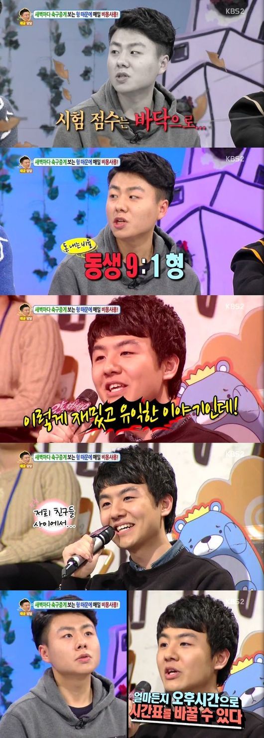 26일 오후 방송된 KBS 2TV 예능프로그램 '대국민 토크쇼 안녕하세요'(이하 '안녕하세요')에서는 매일 새벽마다 축구 중계를 본다며 동생을 깨우는 형의 사연이 그려졌다.